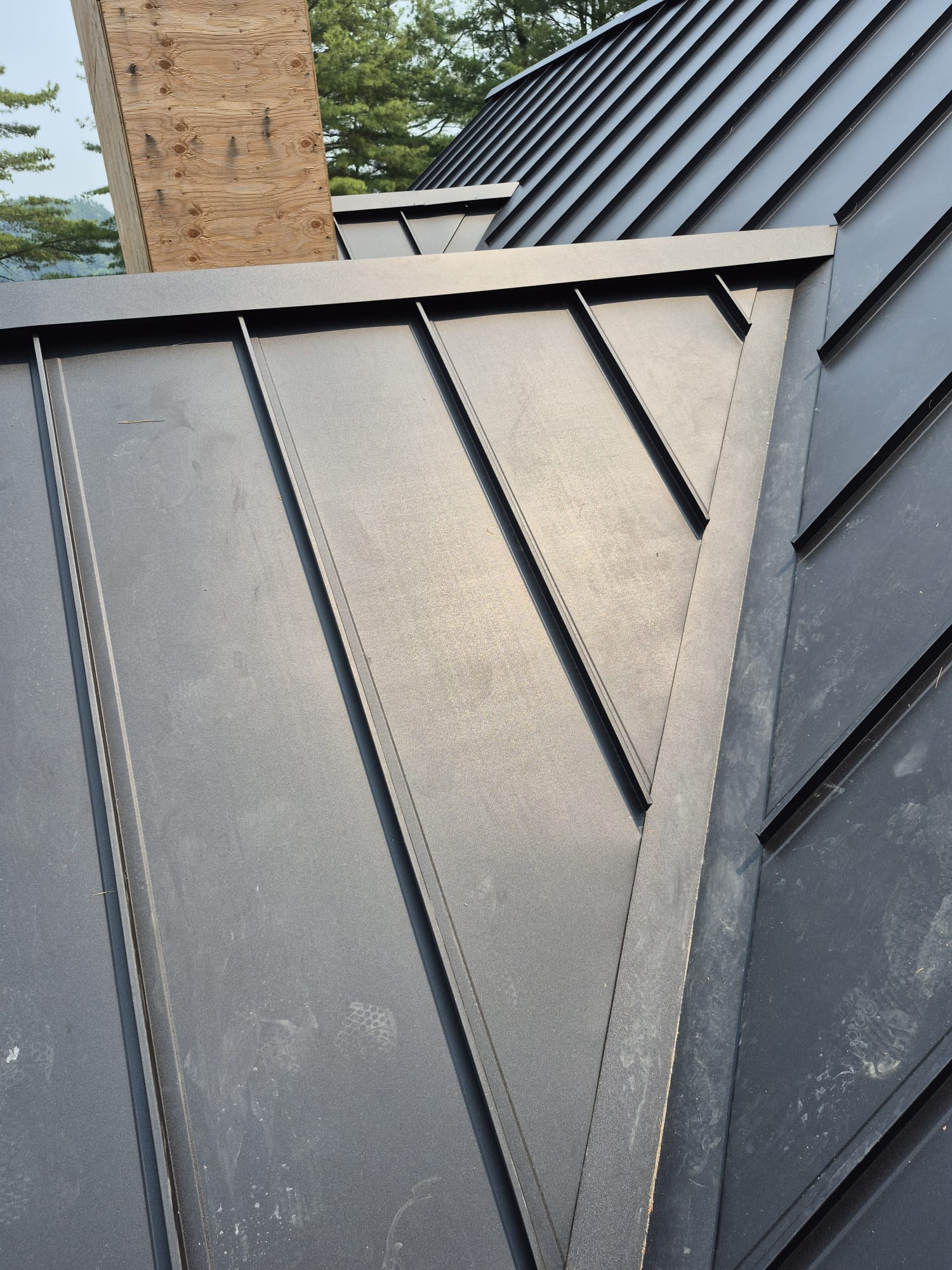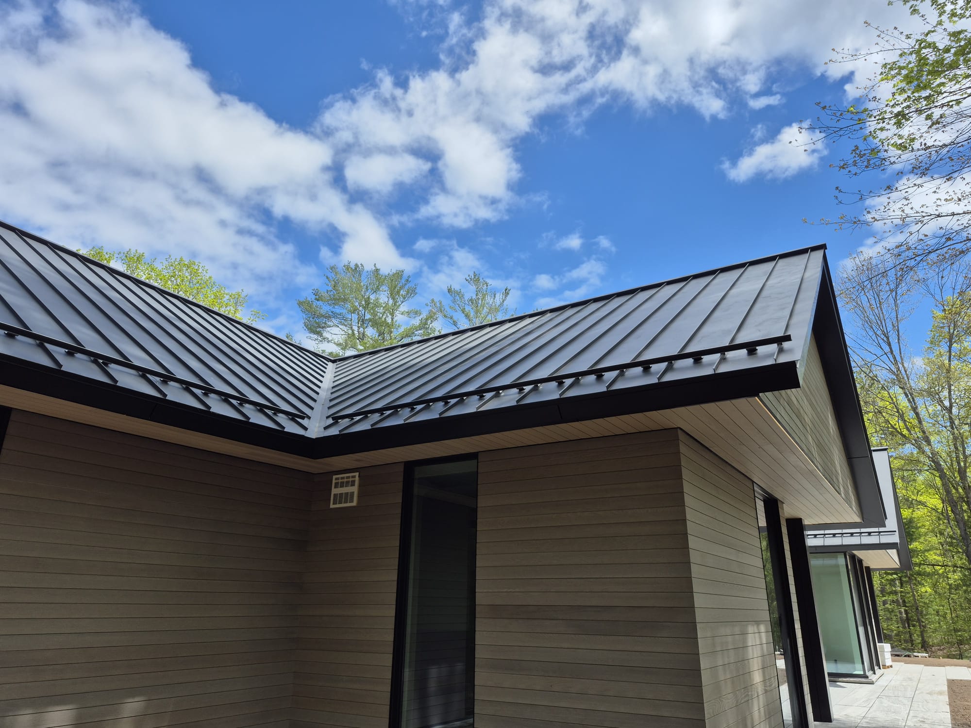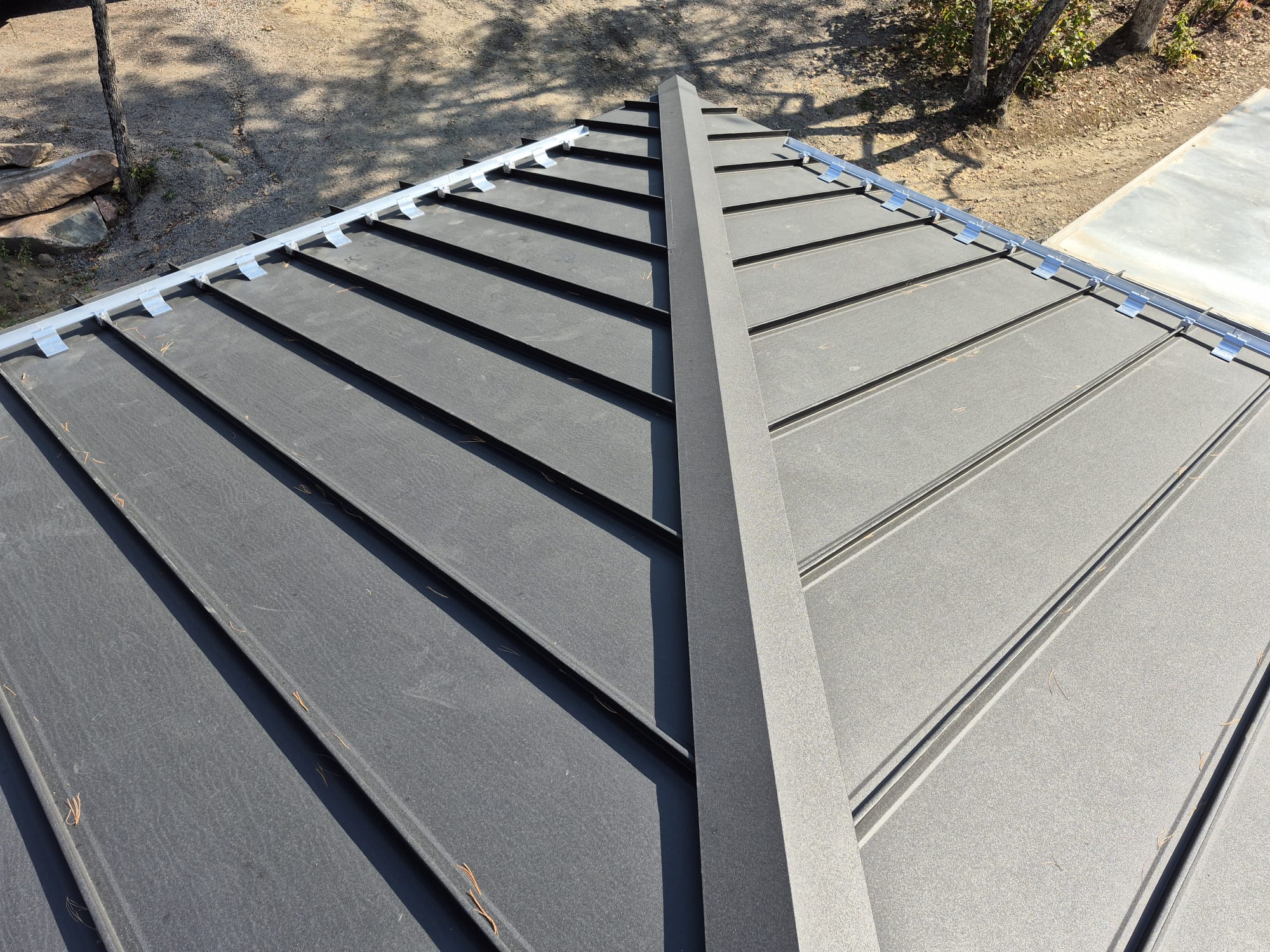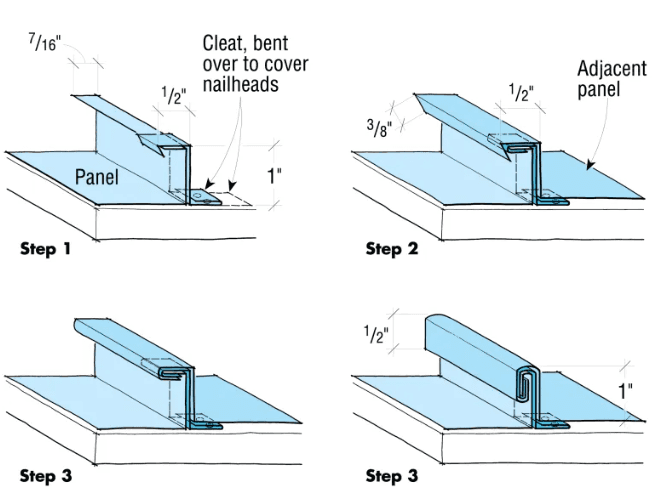 Metal panels are locked together using raised seams instead of exposed screws.